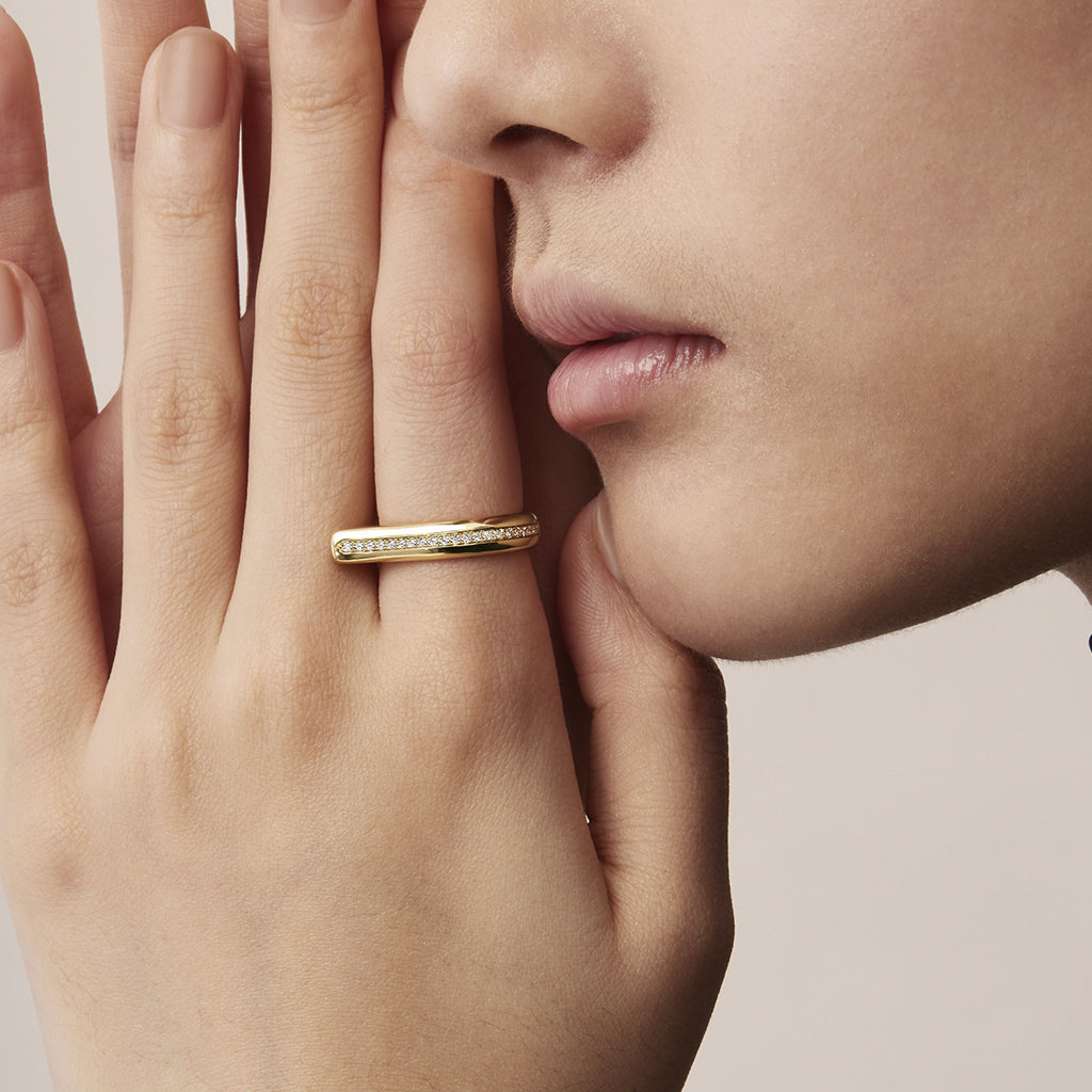 The subtle details of the LU Diamond Band mirror that of a drop of water. The comfort fit, the bold use of metal, and the simple execution make this a piece you want to wear everyday.