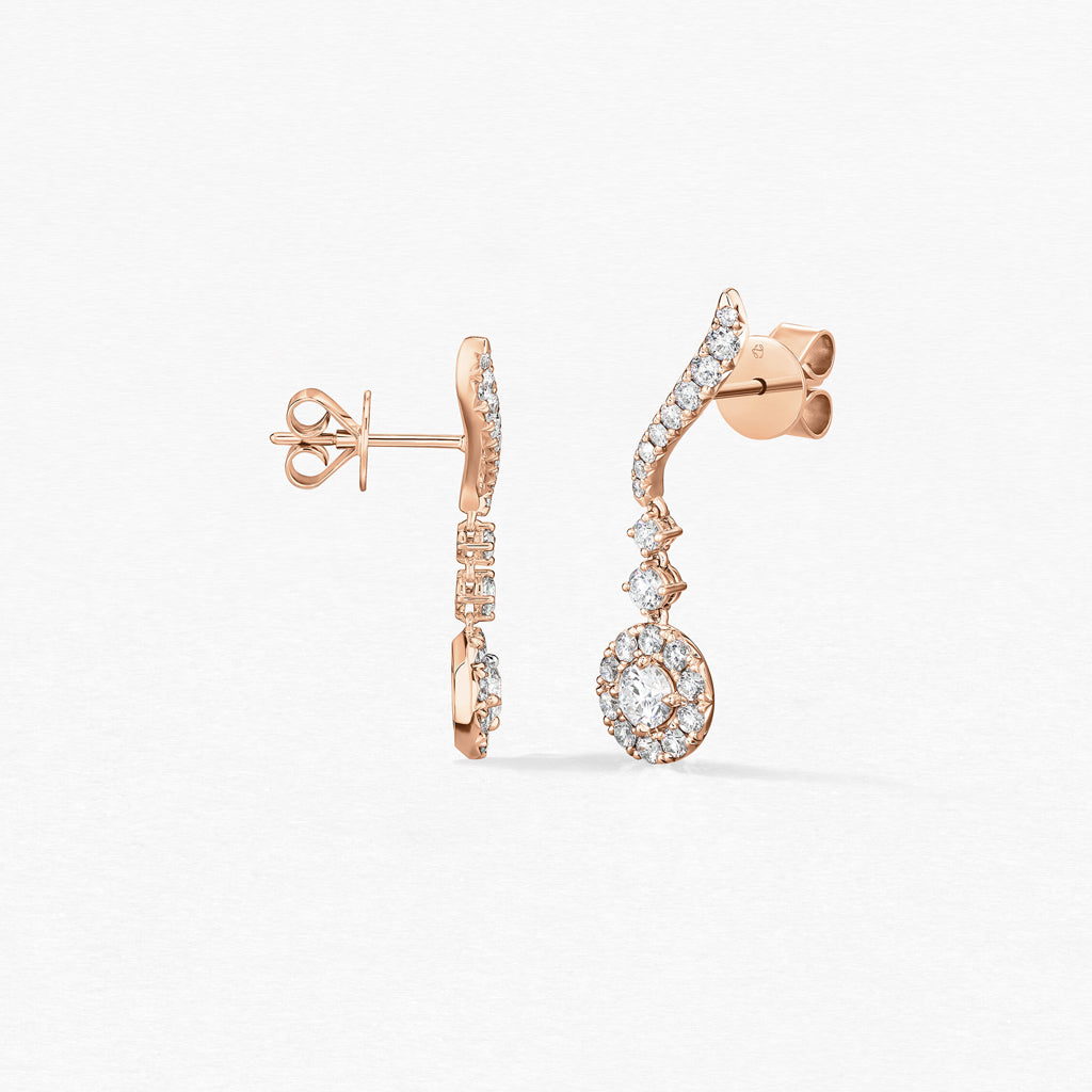 Perfect for everyday, the Vela Drop Earrings climb the ears for a feminine yet flattering look. A dangling diamond drop glimmers every time you wear them.
