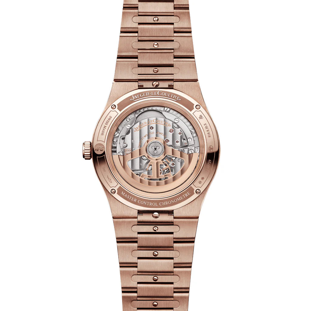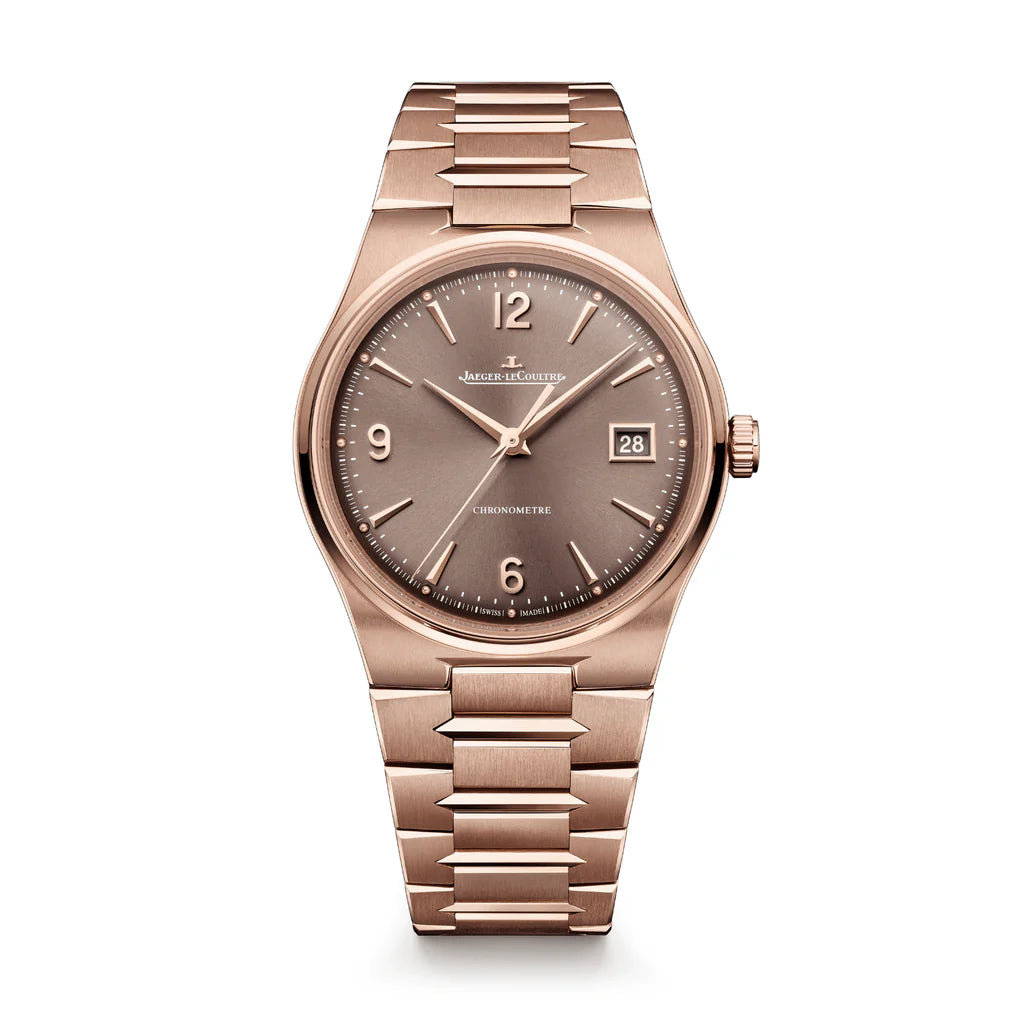 The Master Control Chronometre Date embodies contemporary elegance. Crafted in 18K pink gold (750/1000), its refined 38mm case, measuring just 8.4mm thick, features a sleek design complemented by a seamlessly integrated 18K pink gold (750/1000) bracelet with brushed and polished finishes, and a captivating bronze-coloured sunray-brushed dial. Powered by the Manufacture Calibre 899, it boasts a 70-hour power reserve, essential date function, and a precision certified by the Jaeger-LeCoultre HPG Seal which completes COSC standards by testing the entire cased-up watch in real-life wear conditions.