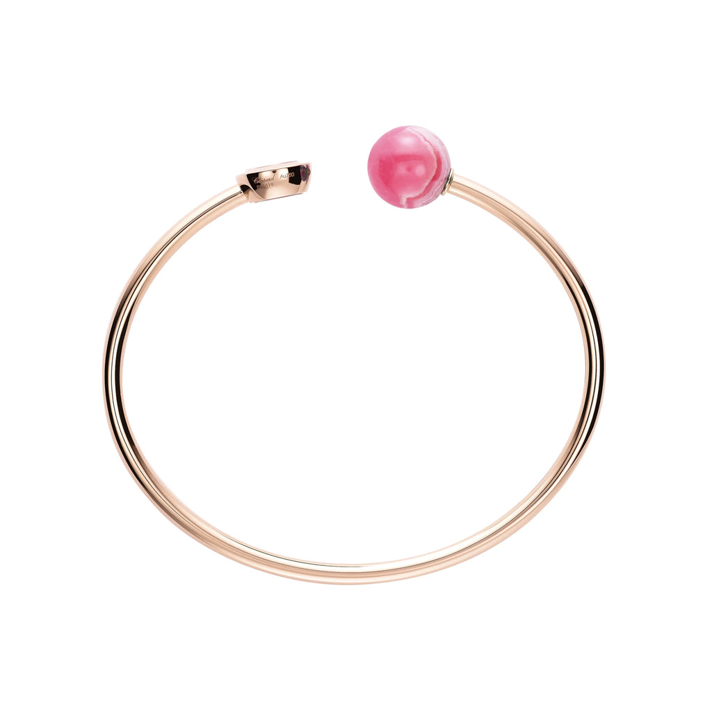 Happy Diamonds jewelry is as unique as it is playful. The dancing diamonds are entirely free between two sapphire crystals, thus enabling them to move without restraint, and through this very movement to enhance their inherent sparkle. Little Diamonds Do Great Things Bangle, ethical rose gold, diamond, rhodochrosite