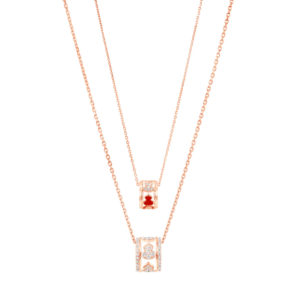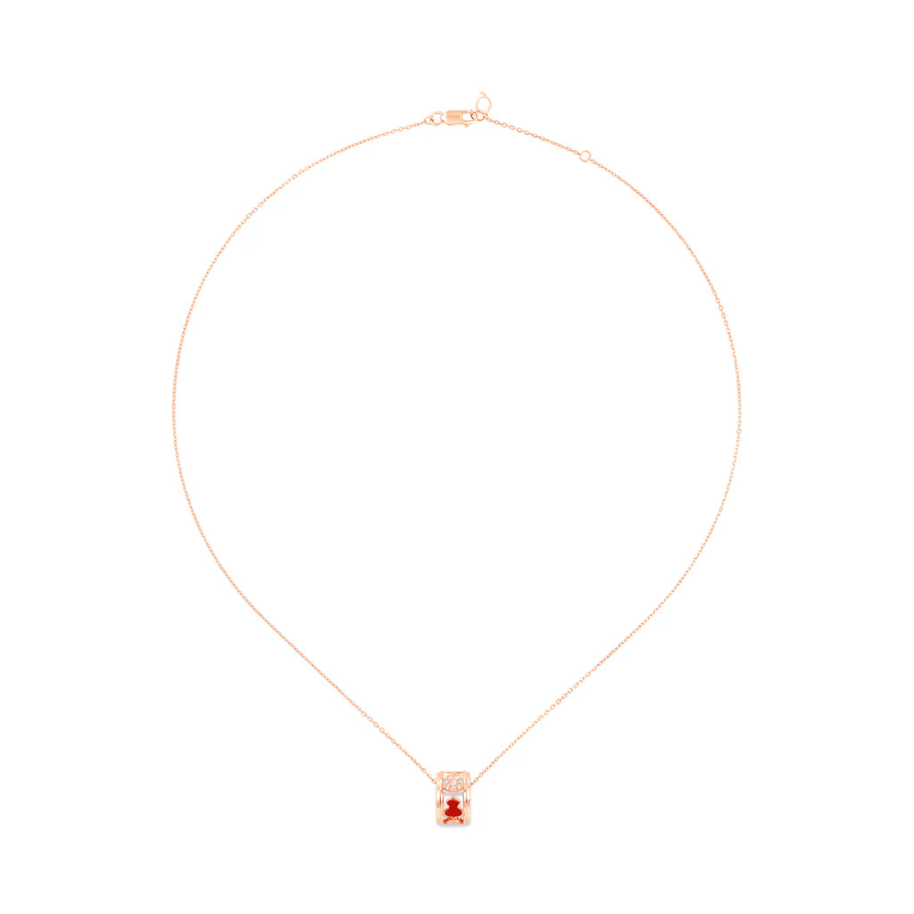 Wulu Eternity Small Necklace in 18K rose gold and red HyCeram® set with diamonds
