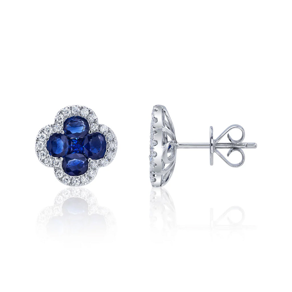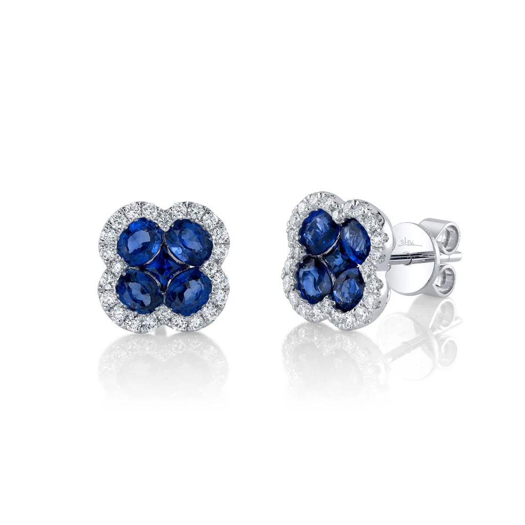 Shy Creation COLOR 0.33CT Diamond & 2.31CT Blue Sapphire Clover Stud Earring