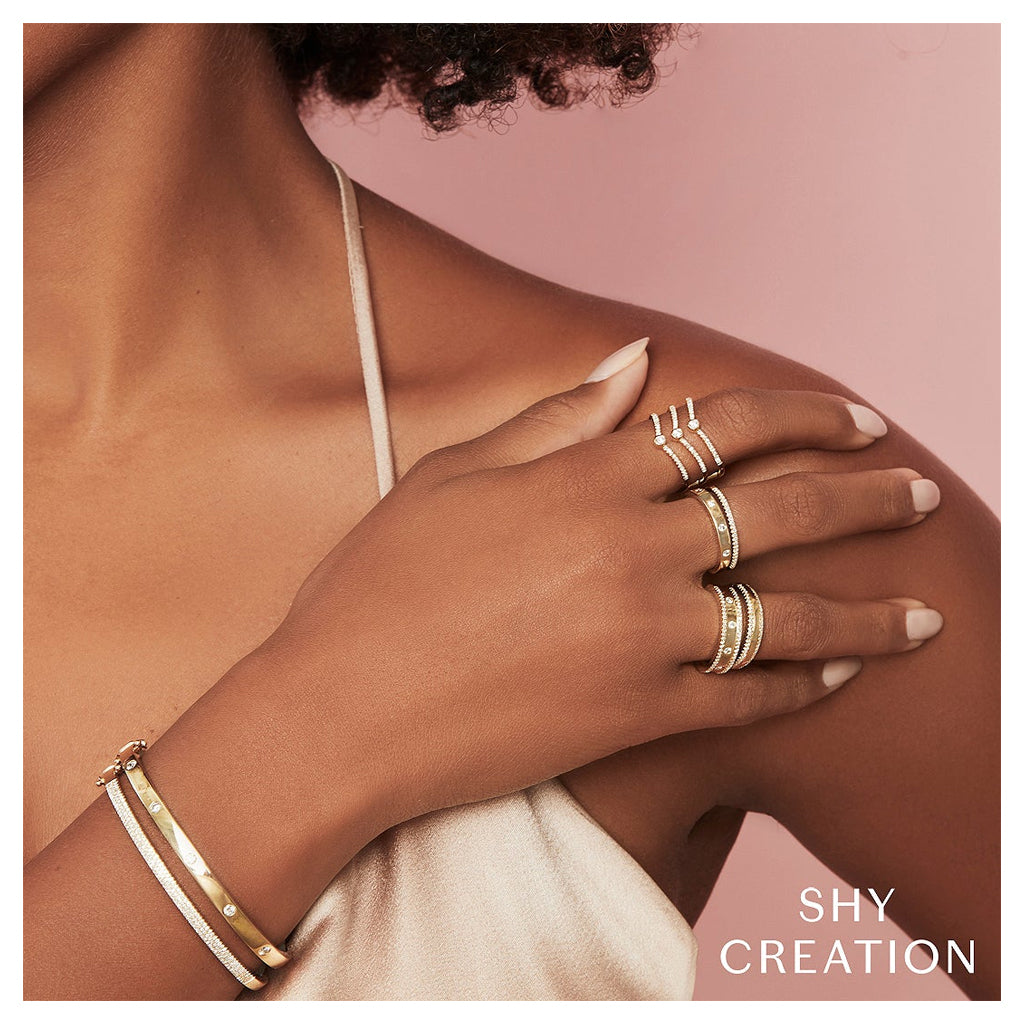 All Shy Creation diamonds are natural and hand-selected. All stones are unique and hand set. As a result, you can expect slight variations in the shade, hue, tint of the color stones and stone count.