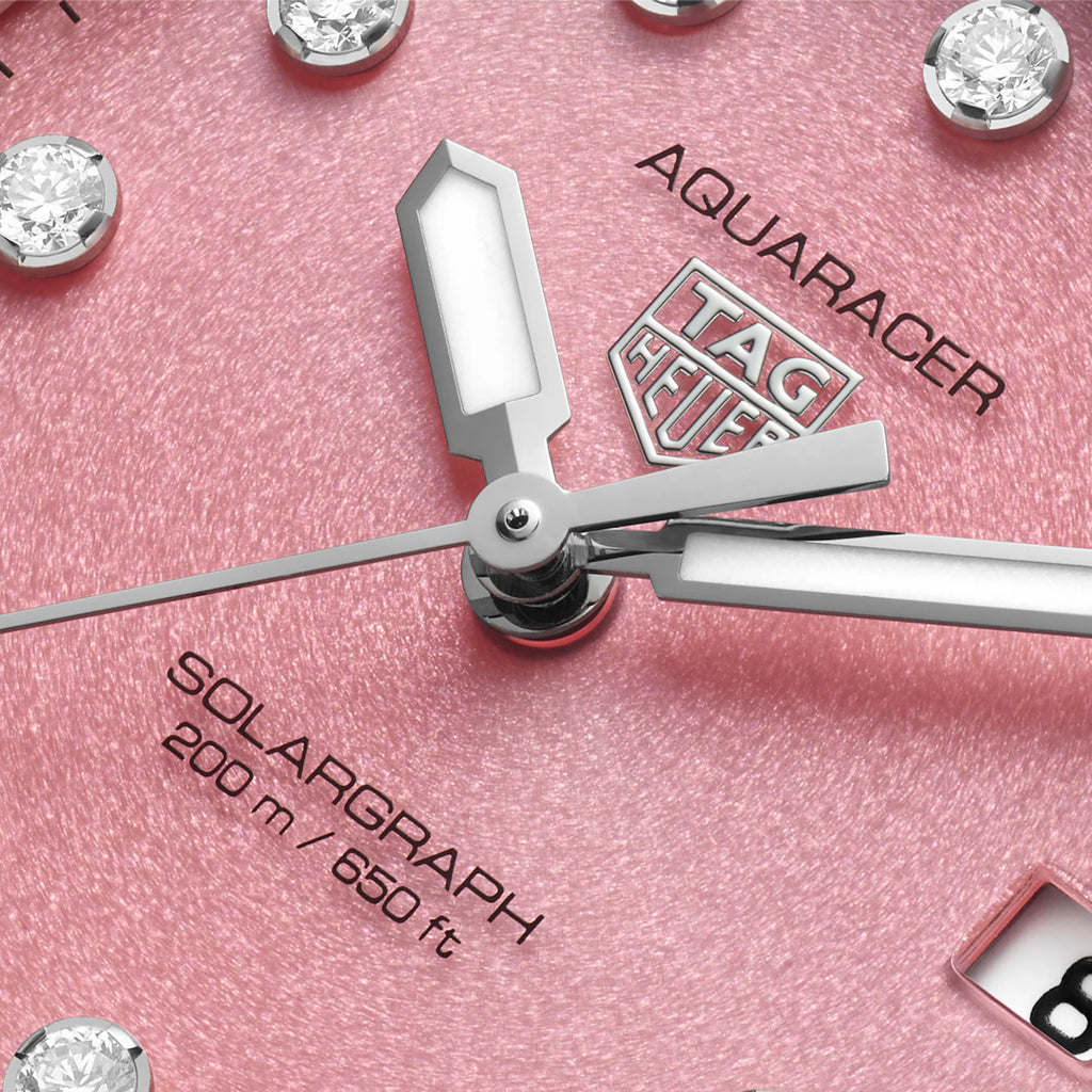 The TAG Heuer Aquaracer Professional 200 Solargraph merges elegance and performance, offering a refined take on the Maison’s versatile tool watch. The pink dial adorned with diamond indexes evokes the ethereal beauty of the northern lights, celebrating exploration in style.